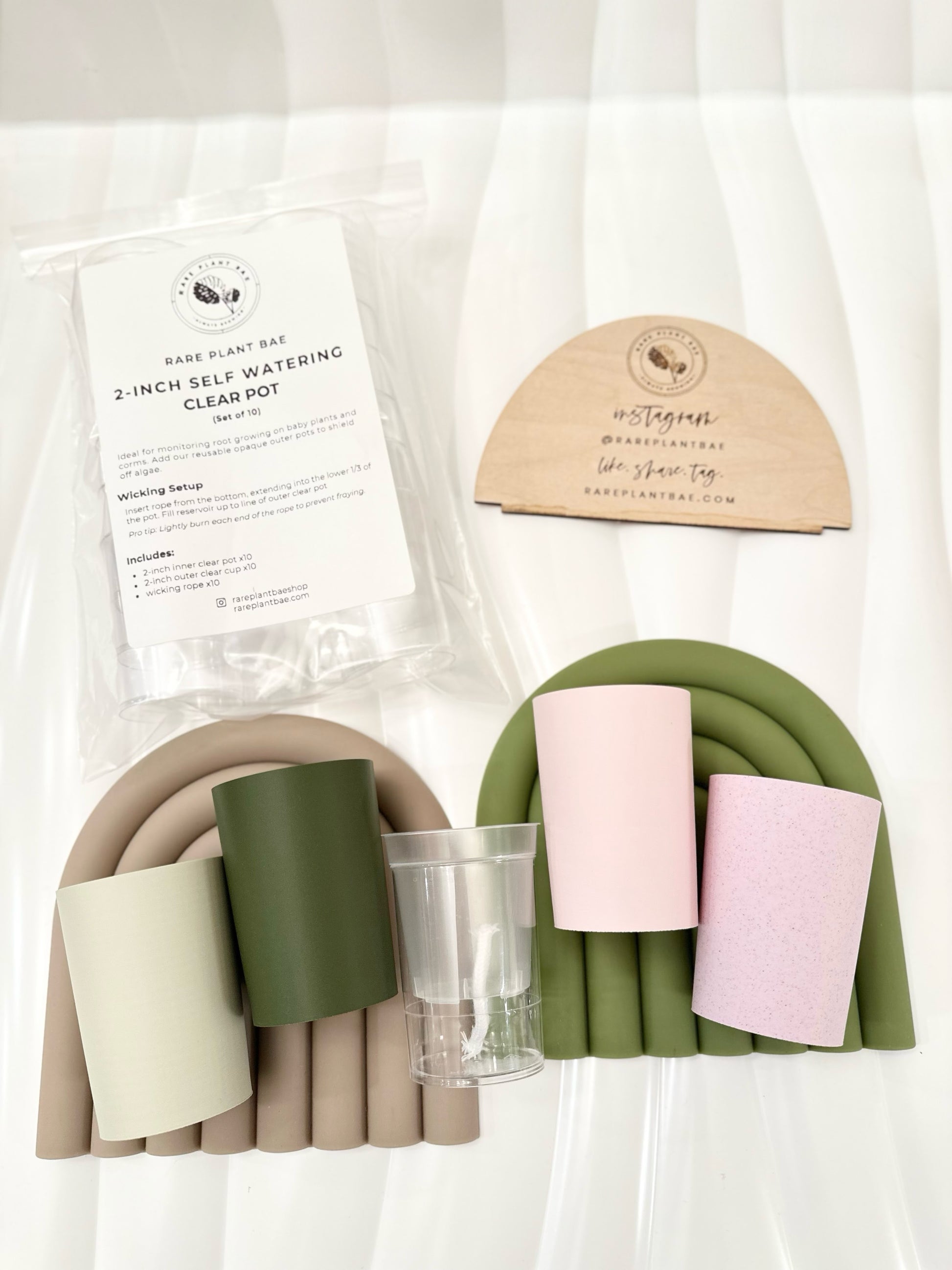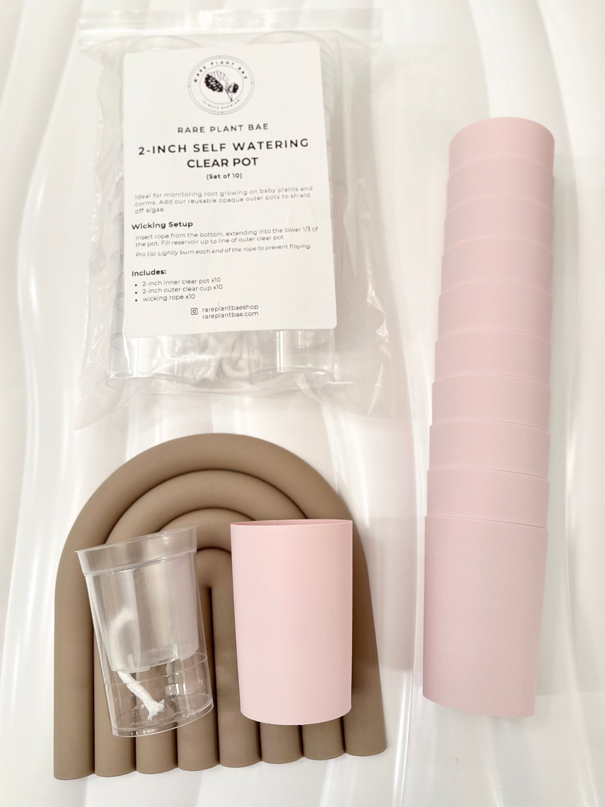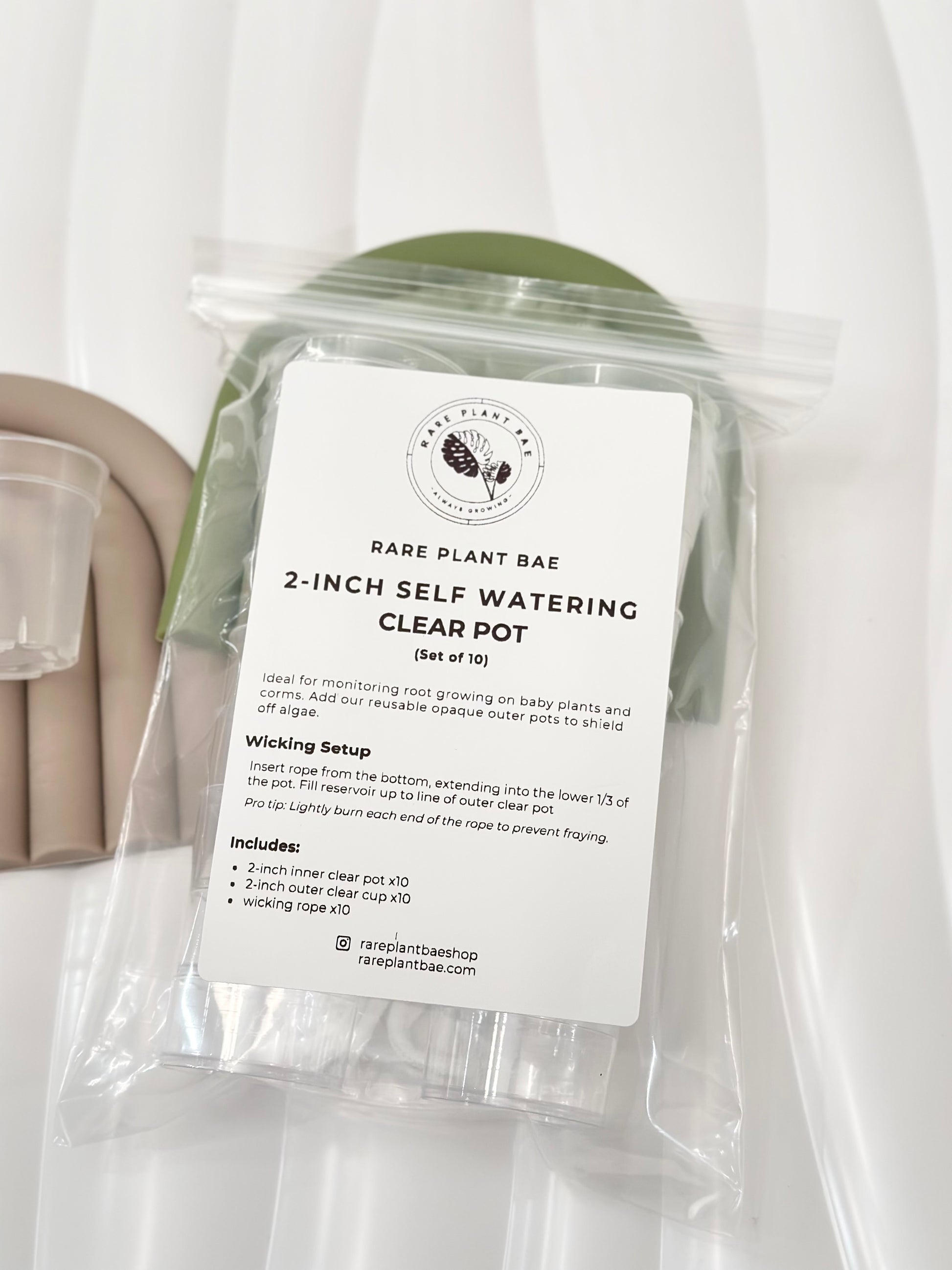 Our 2-inch self-watering pots are perfect for propagations and Alocasia corms. The clear design makes it easy to monitor root growth. Now with reusable opaque outer pots to block light & reduce algae growth. Why you’ll love them: