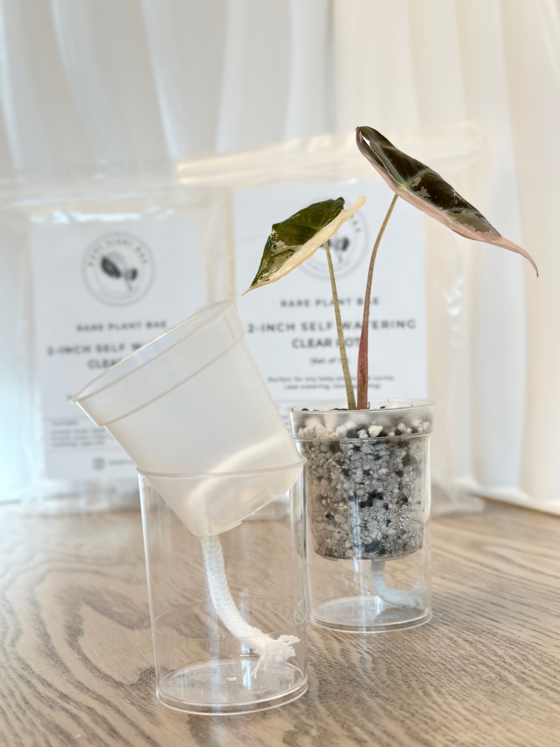 Introducing our new 2-inch self-watering clear pots! Perfect for propagations and Alocasia corms, these pots make plant care simple and stress-free. The clear design allows you to easily observe root growth, helping you stay connected to your plants' health.