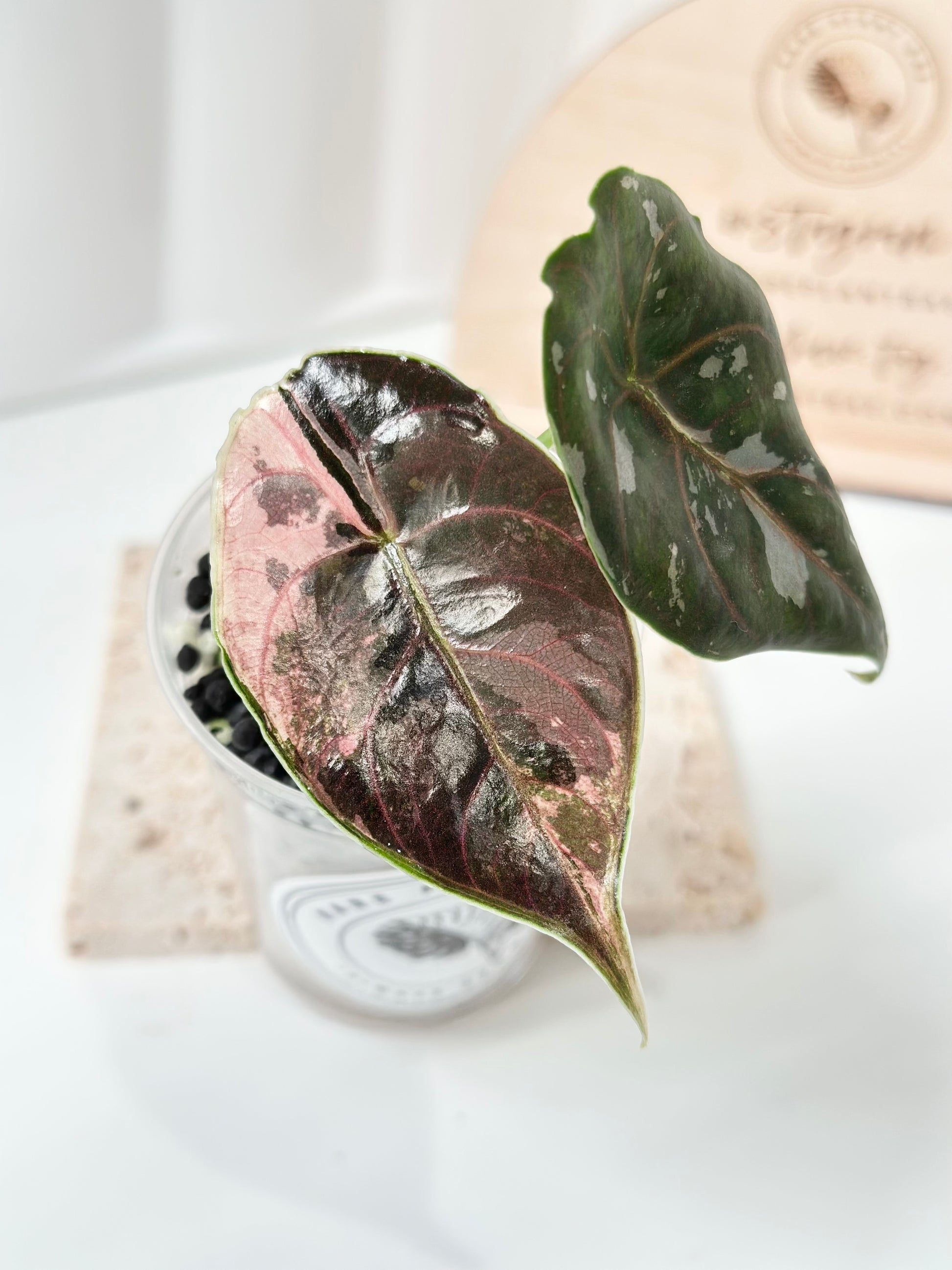 Alocasia Azlanii variegated - albo/pink. This exact plant is growing at least 2 corms.