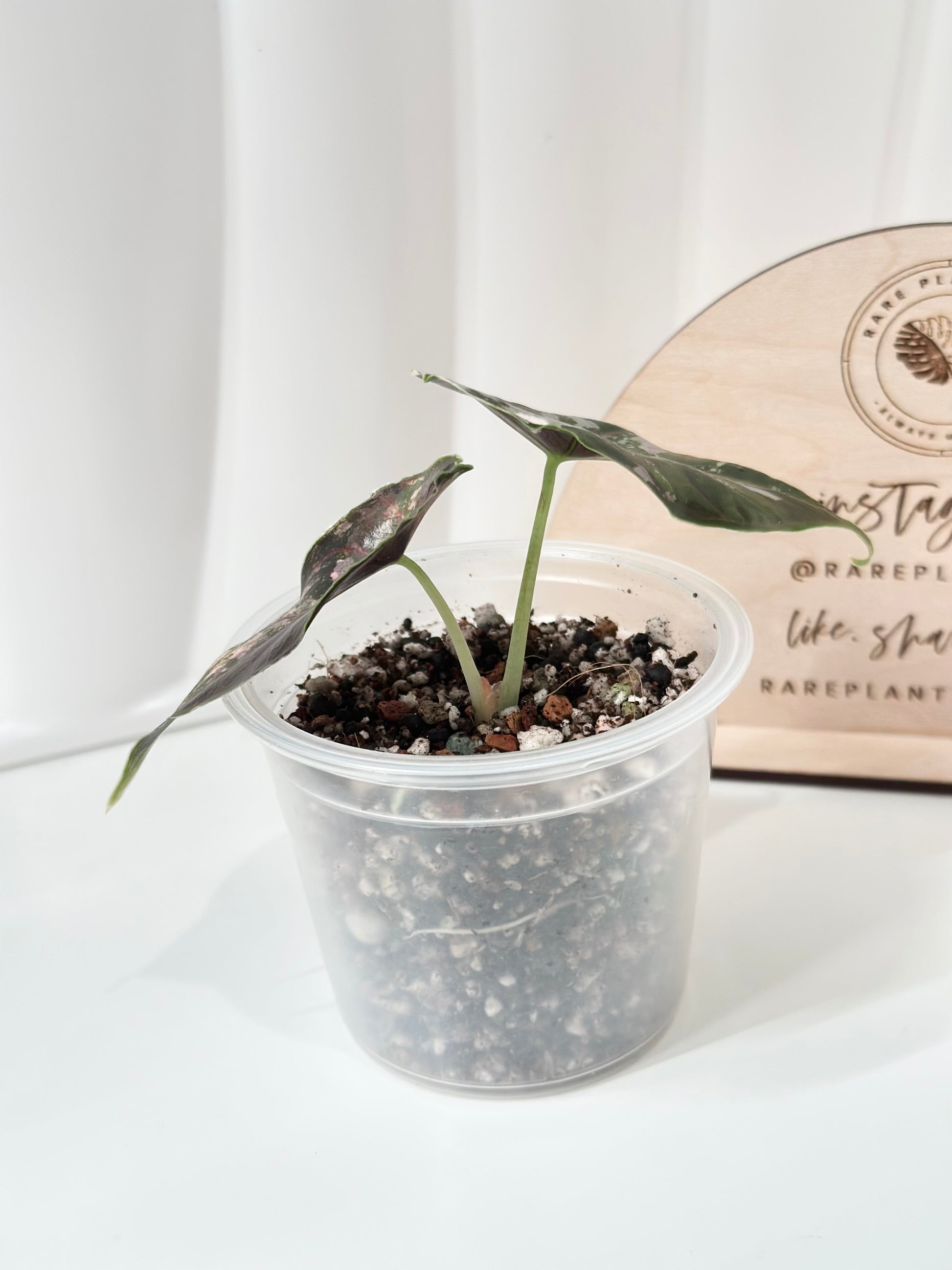 Alocasia Azlanii variegated - albo/pink. This exact plant is growing at least 2 corms.