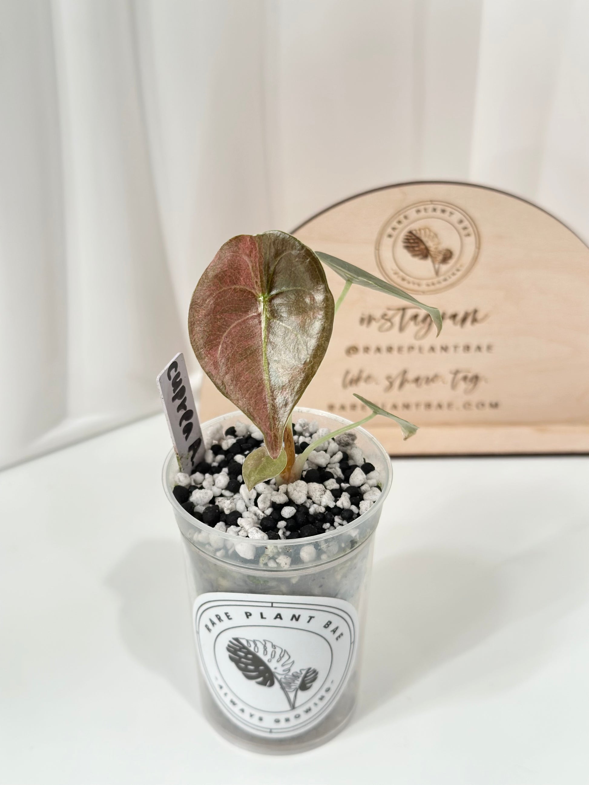 Alocasia Cuprea Variegated - pink/mint. For this gene, new leaves show bright pink color at first but will turn into minty/ minty pink as they fully harden.