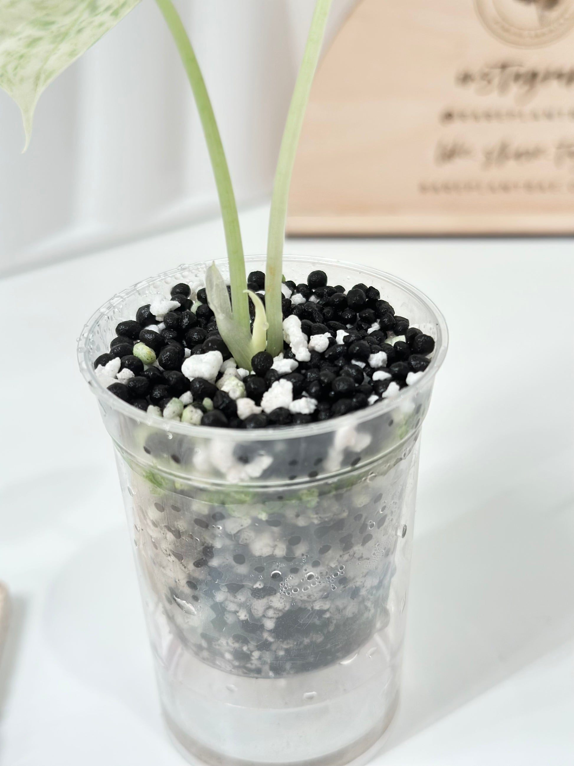 Mature leaves give distinctive mint variegation. The mint green speckles on the leaves allow photosynthesis and thus provide enough energy for the leaves to sustain themselves - even if the leaves seems too albo. (similar characteristic to Monstera Mint)