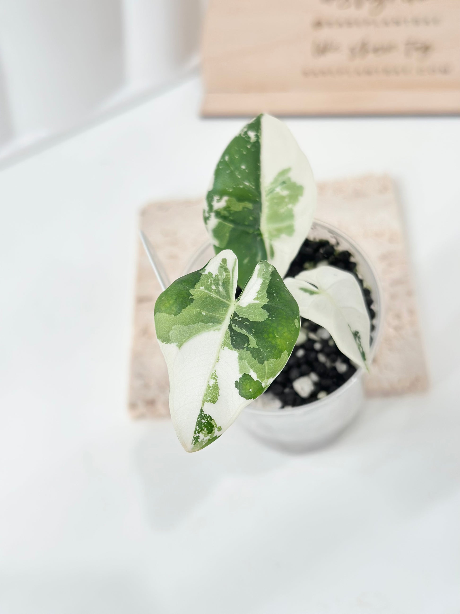 Alocasia Scabriuscula Variegated - albo. The leaves stay albo. Different than albo/mint strain.