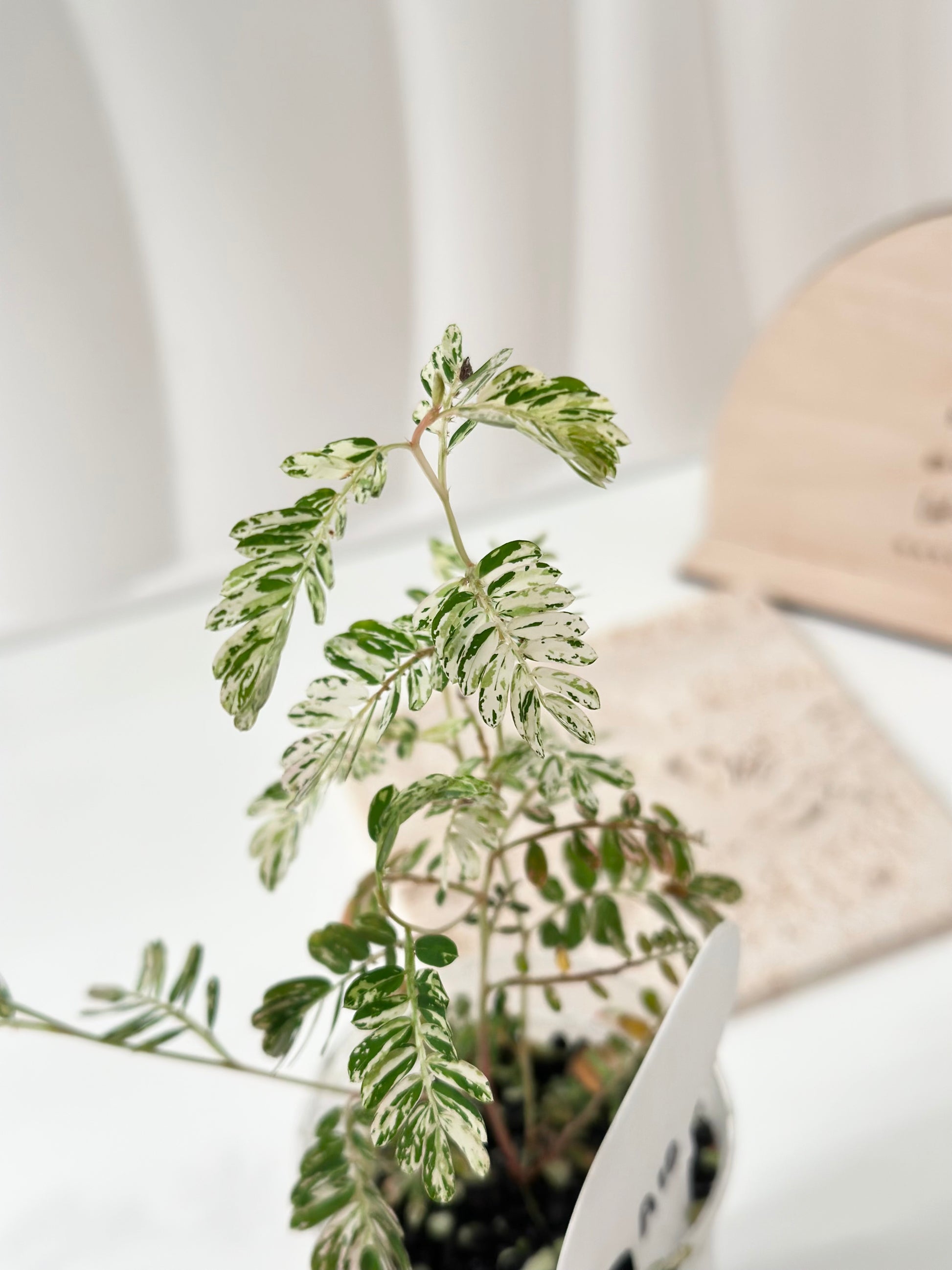 Phyllantus Urinaria variegated - pink. This plant is super cool! The leaves during night time, and likes to activate multiple growth points. They also grow fast, so you will get a bushy plant soon!
